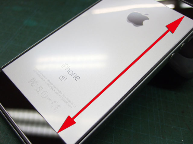 全体を貼ればいいのでしょうが、近所の100円ショップにはSE用の背面フィルムは売ってません。