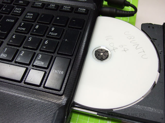 ディスクドライブに、UBUNTUのブートディスクを入れて、起動します。