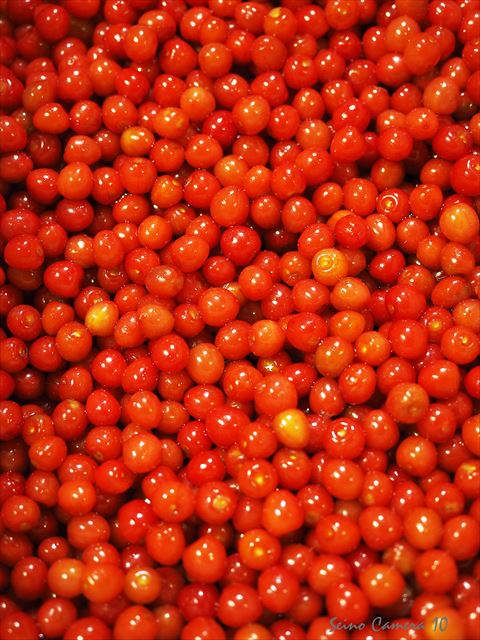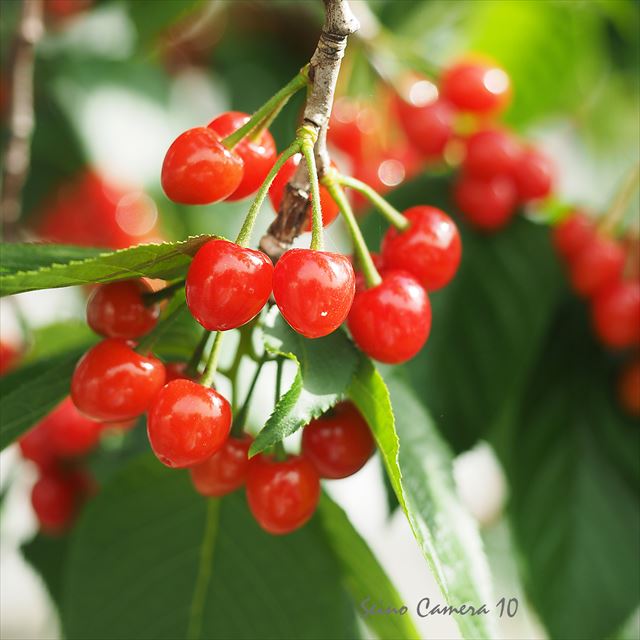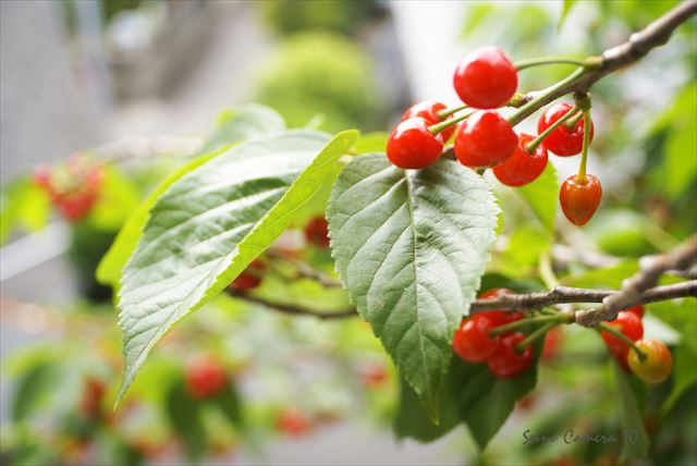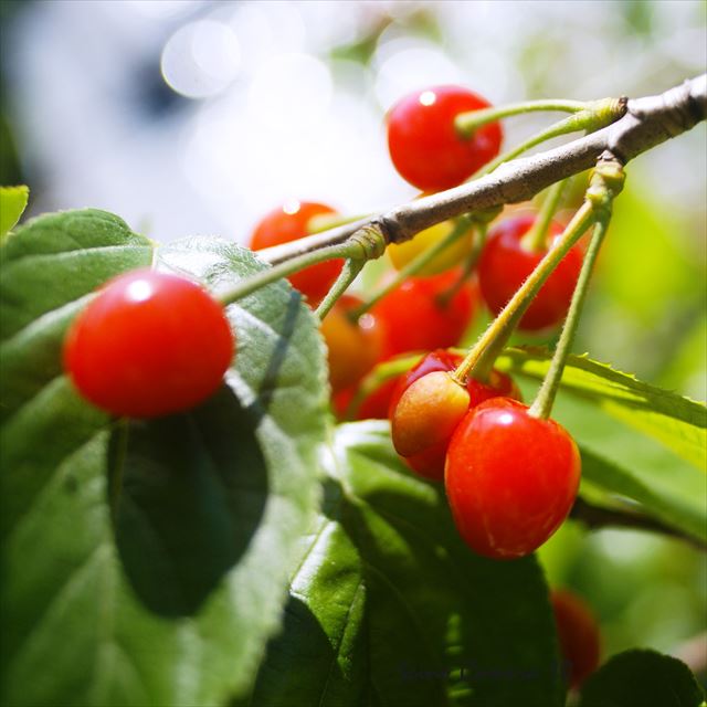緑だったサクランボも、黄色から赤にだんだん変化していっています。