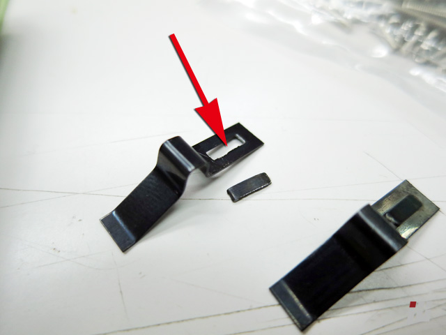 このたれてくる蓋を押さえるためのバネの、ストッパー部分を折ります。