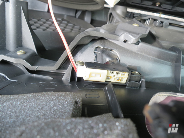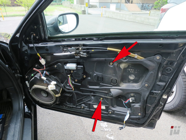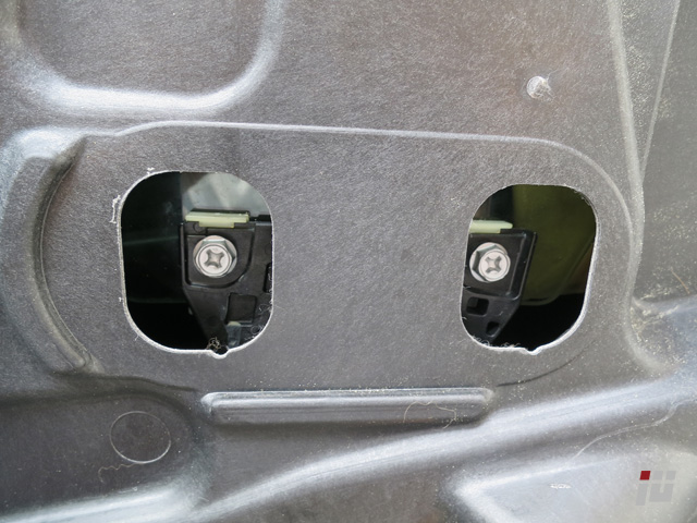 本来であれば、内内張りの真ん中あたりにある2つ並んだ四角いグロメットを外して、