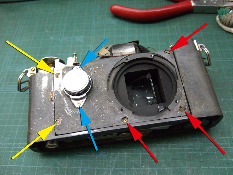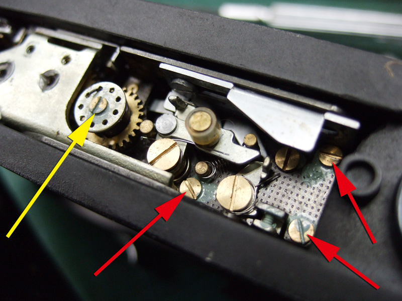 青矢印は、スローダイヤルの締結用。