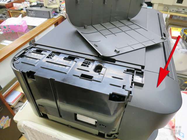 それと、シートがハマってた部分も汚れてるし、もしかしたら廃インクタンクが満杯になってるのが原因なのかもしれません。
