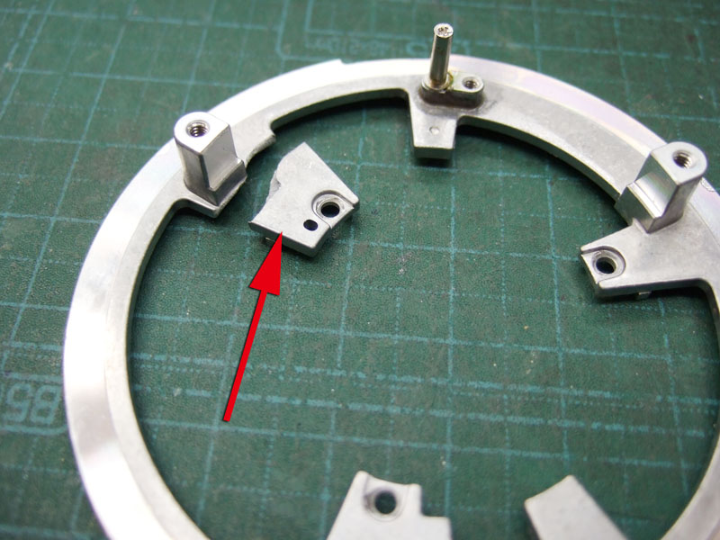 ということは多分、絞りのリンケージの、まぁだいたいあのへんが外れてるんでしょう。