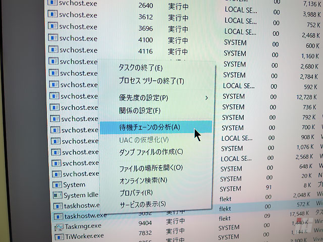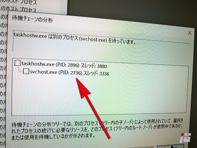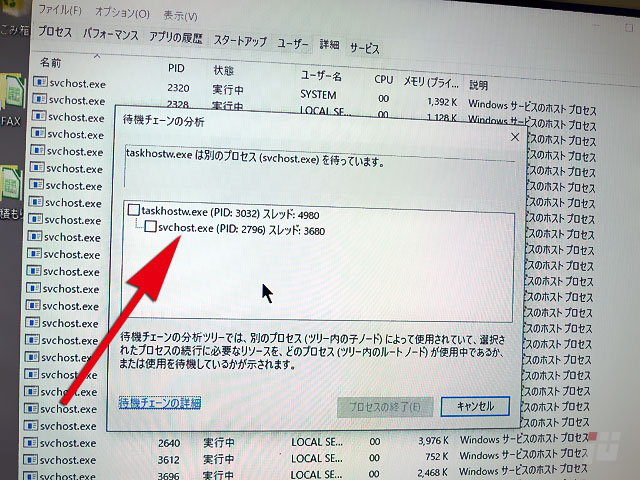 svchost.exeの一つが関係して、なにかをずっと待ってるようです。
