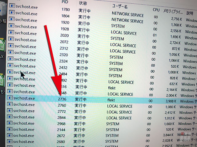 数あるsvchost.exeの中にこれがあるのかな?