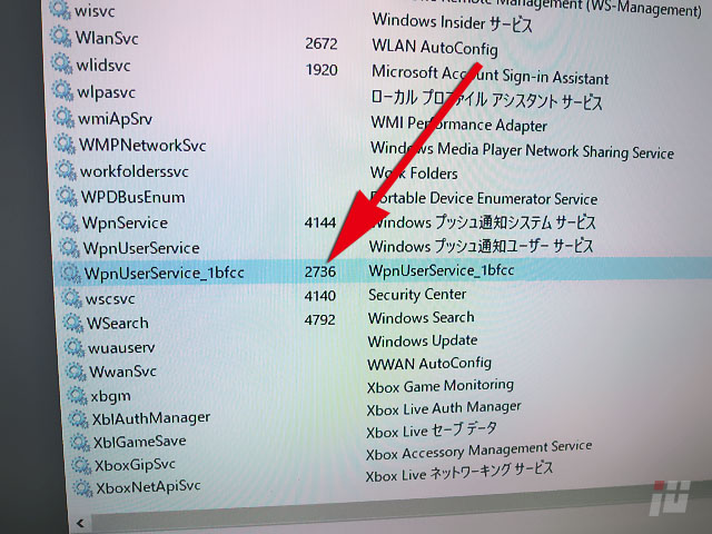 svchost.exeのPID、今回の場合は2736になってますね。