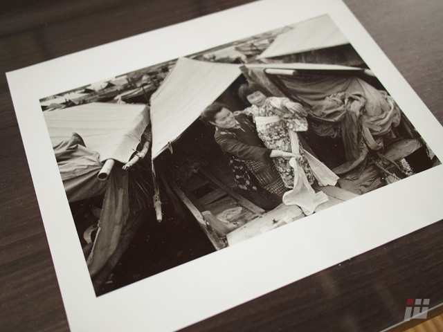 それに展示の仕方も面白い。座卓タイプの長テーブルに同じ大きさにプリントされた写真を並べている。