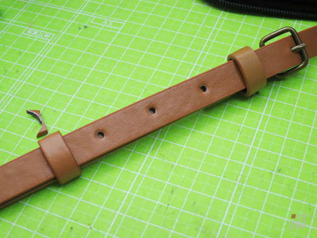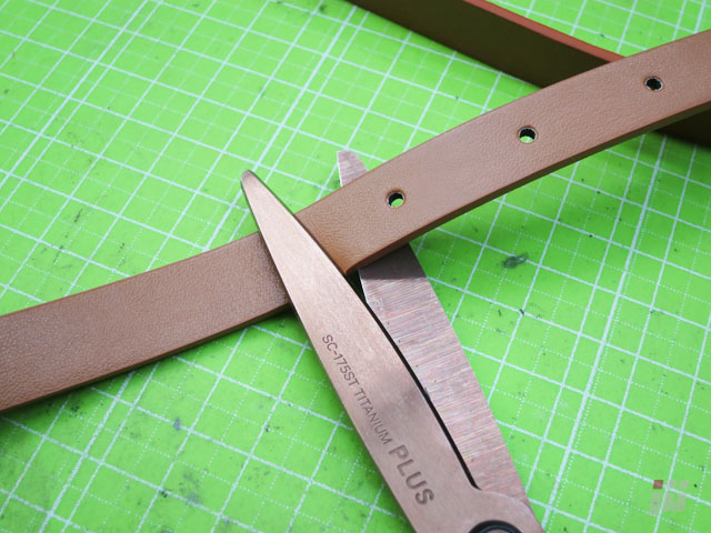 その切ったバックルからベルト通しの輪っかを取って、通しておきましょう。