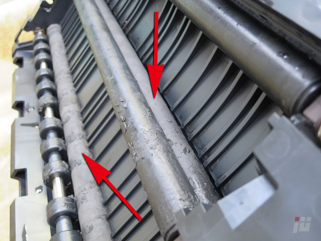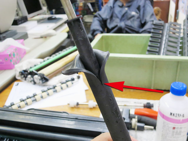 どうやら、この矢印のゴムローラーのゴムが経年劣化で朽ちてきているようですね。