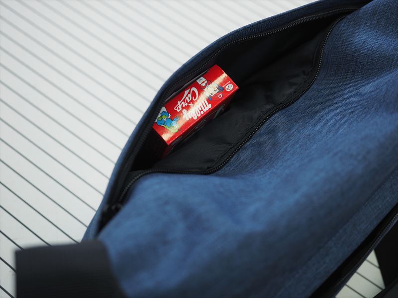 内側にポケットを設けないことで、容量を稼いでいますね。