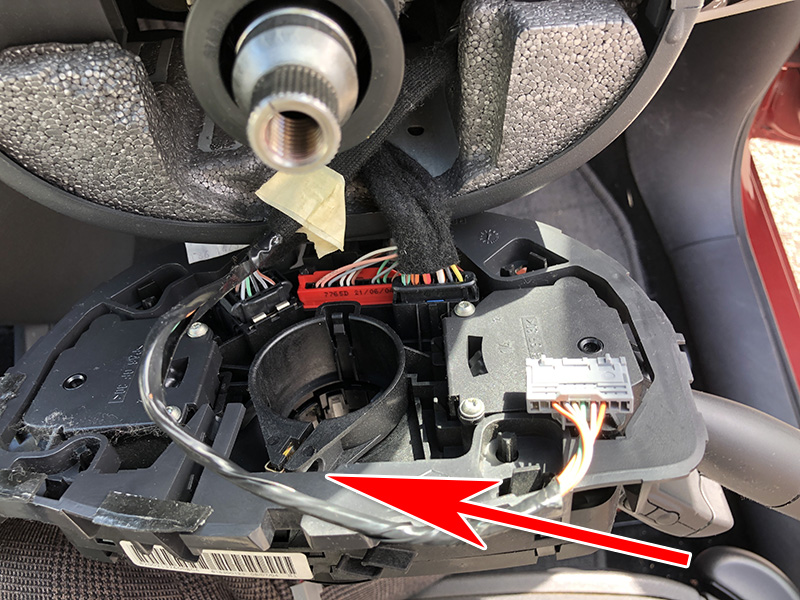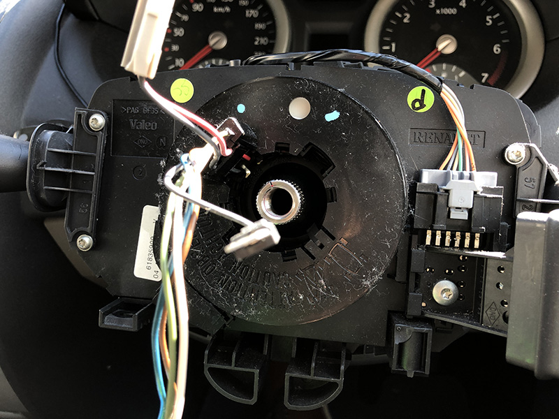 はあはあ、ハンドルの回転に対応できるようにフレキシブルケーブルで配線してあるのね。