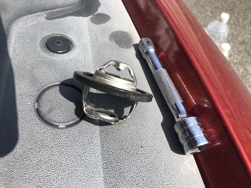 このバイメタルがダメになってくると、開くべき温度になっても開かなくなり、エンジン内の水温が上がり過ぎてしまって、最後はオーバーヒートしてしまいます。