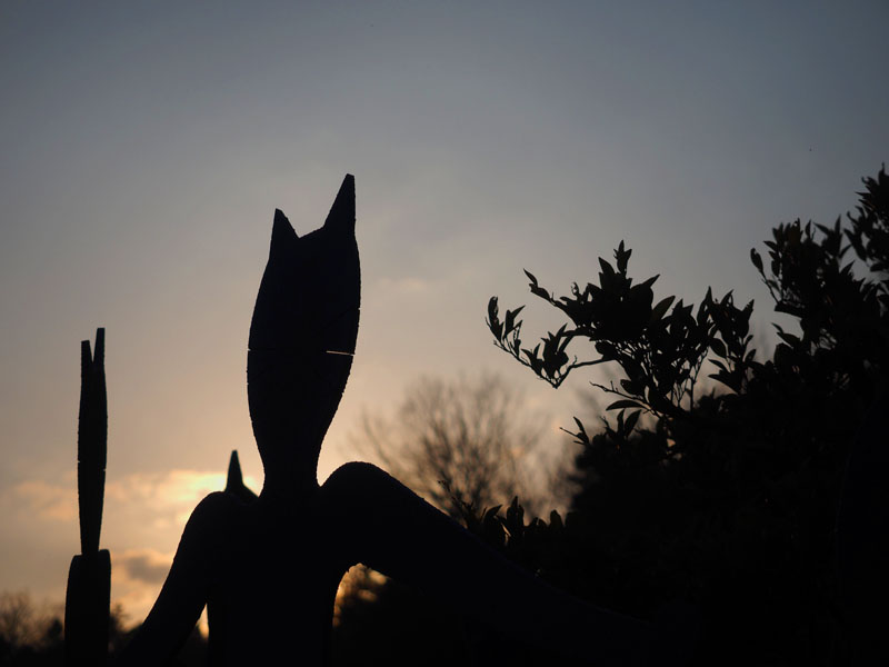 夕日がいい感じにネコのオブジェを浮かび上がらせてくれます。