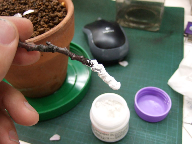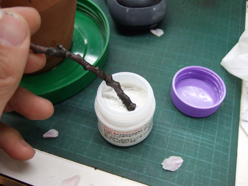 そしたら水切りした枝の根元に、「ルートン」をつけましょう。