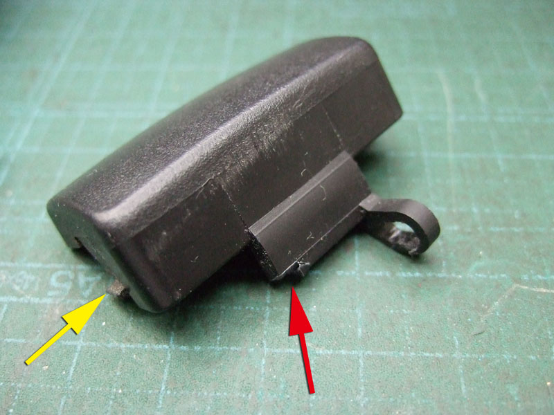 そして、黄矢印の引っかかる部分が経年変化で内側に曲がってしまってます。