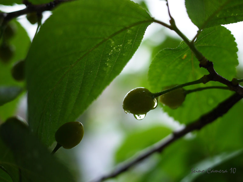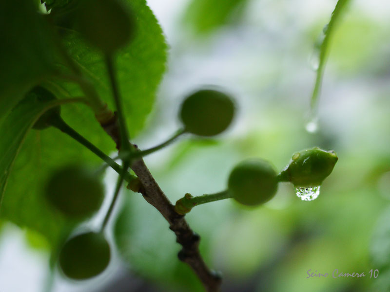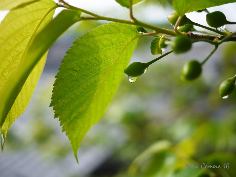 まずは、庭のサクランボについたしずくシリーズ行ってみましょう。