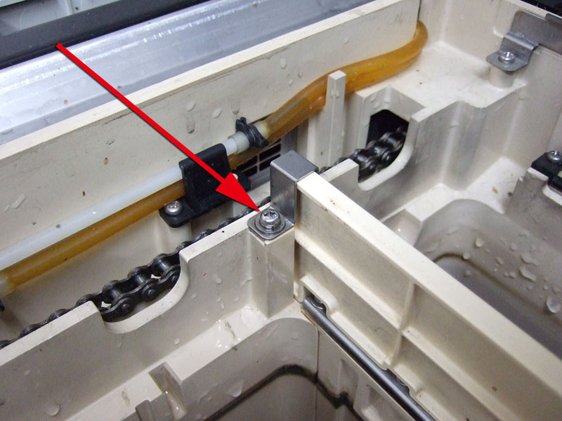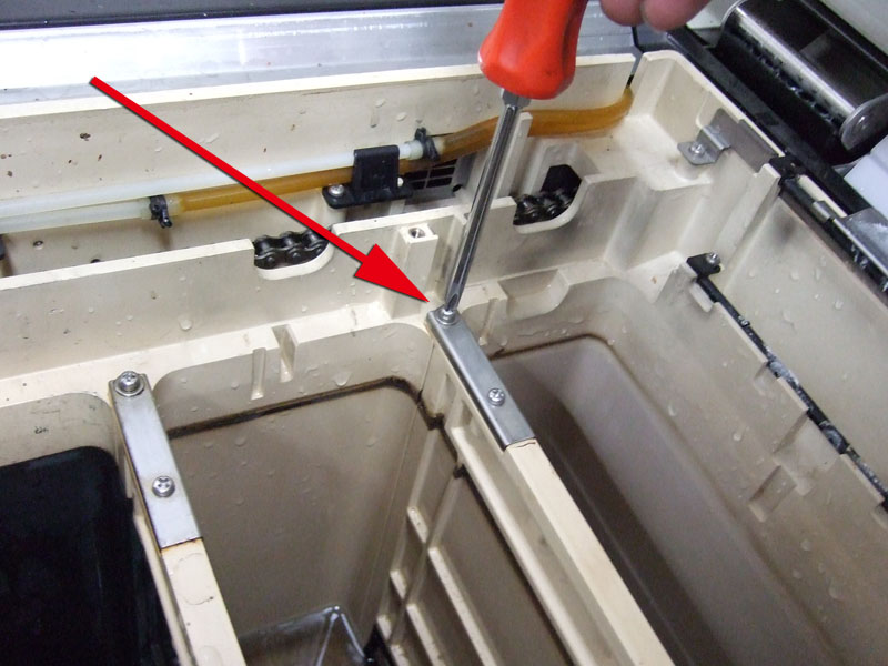 矢印の上部隔壁を留めているブラケット2箇所を外して、上部隔壁を取ります。