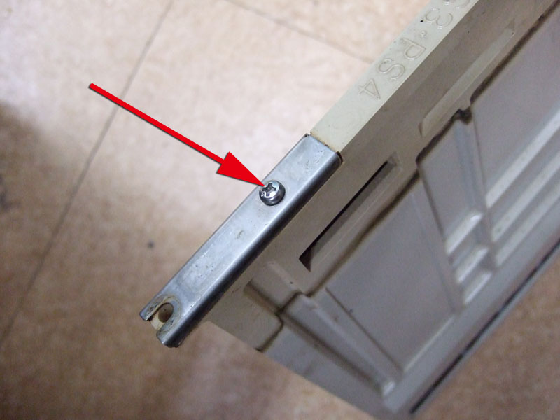 次にその下にある矢印のプラスネジ、反対側も含めて2本を外せば、