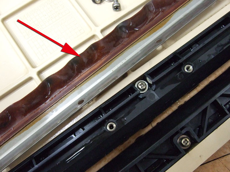 よく見ると、端に近づくほど、パッキンの真ん中に溝が見えてきますが、真ん中辺りではほぼなくなっていますね。