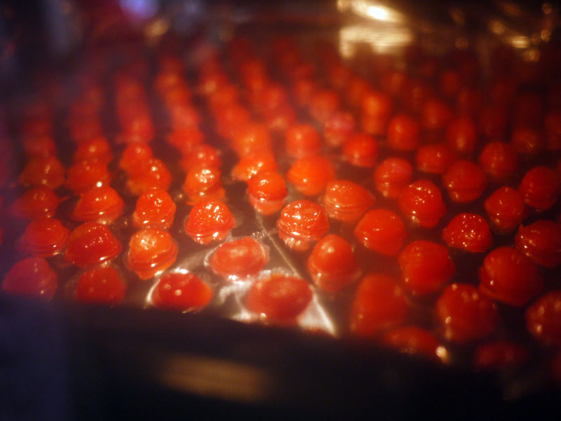 1時間加熱したら、ひと粒ずつ全部ひっくり返して、もう1時間加熱。