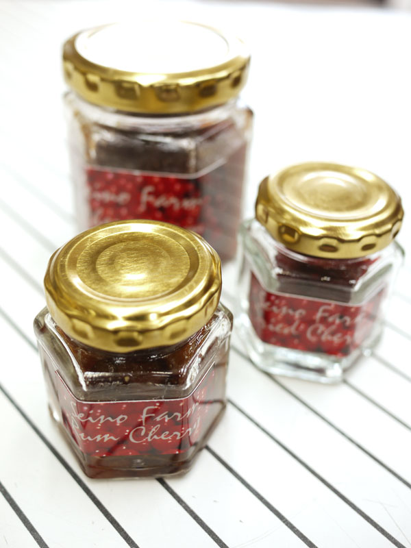ドライチェリーが出来上がったら、小さいビンに分けて入れましょうか。