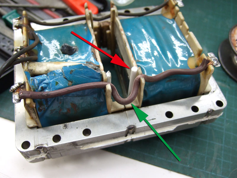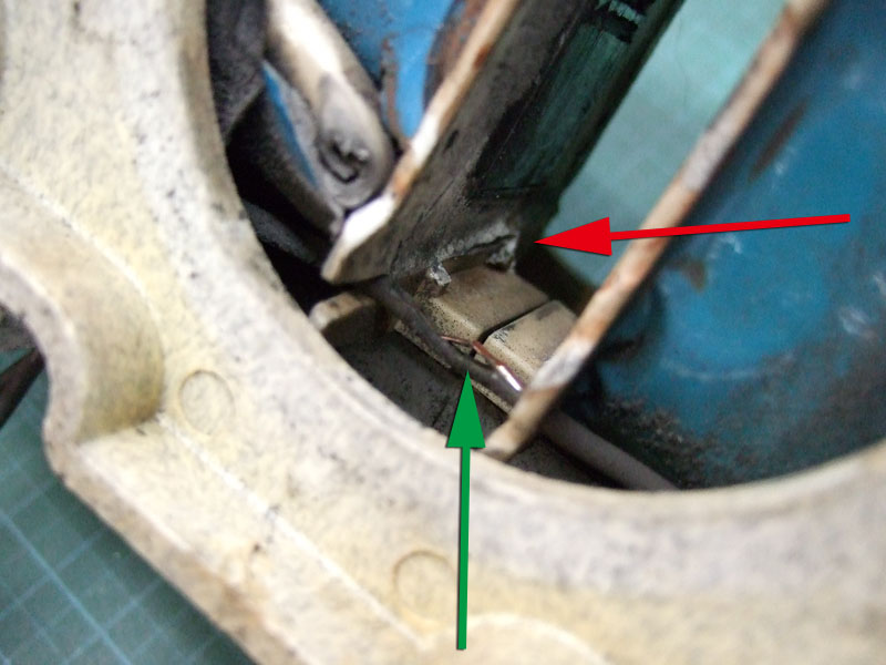 そのせいでしょうけど、緑矢印のケーブルが擦り切れてしまってます。