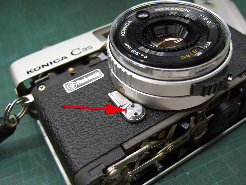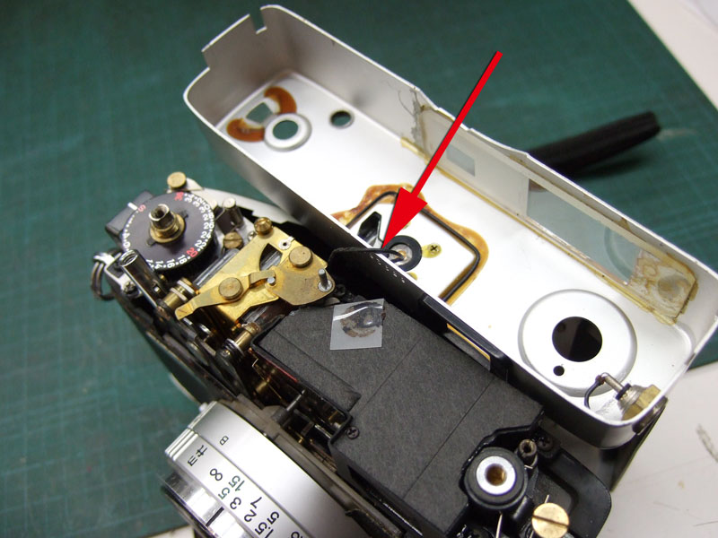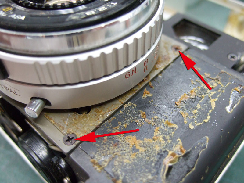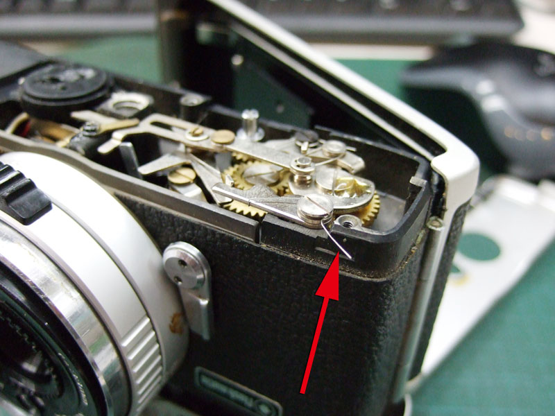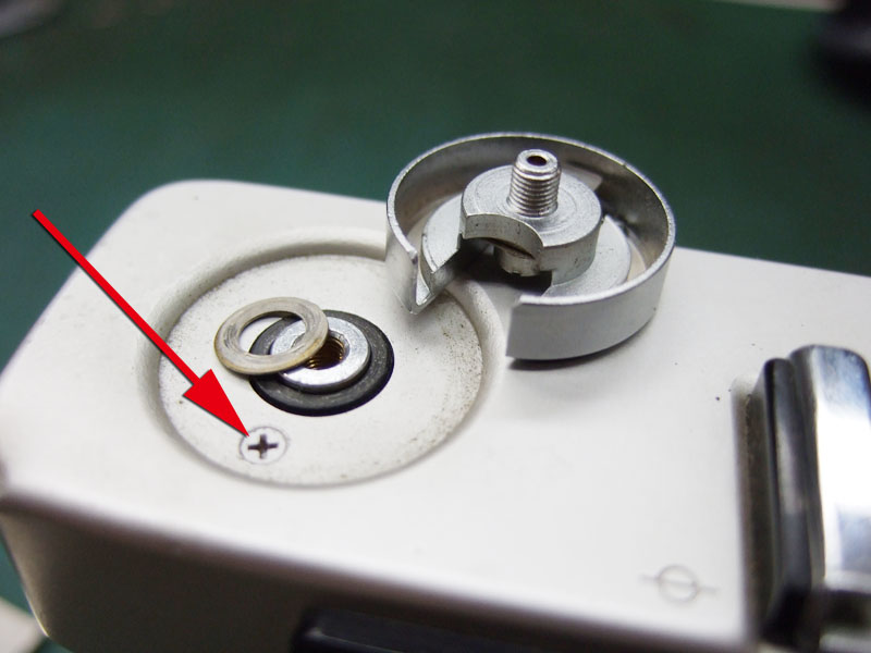 レンズシャッターのコンパクトなので、レンズをバラせばシャッターにアクセスできると思って矢印の細いカニ目リングを外してみたんですが、どうもこちらからのアクセスではないようですね。