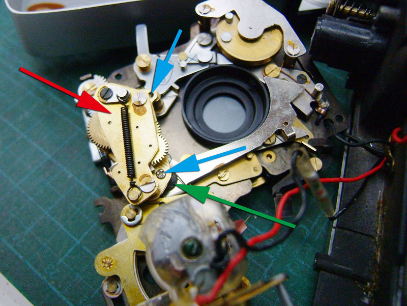 おそらくはシャッターユニットの何処かのはずなので、部品一つ一つの動きを見ながら、