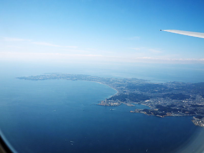 海岸に小さくランドマークタワーが見えてますね。