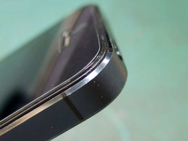 では、液晶の浮きはというと、液晶のガラス面の周辺に硬い樹脂製の枠があって、そもそもはそれがしっかり接着されていたようなんですが、どうやら剥がれています。