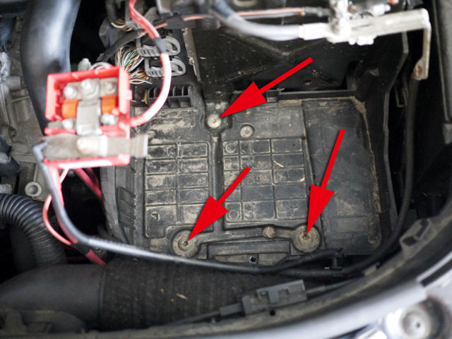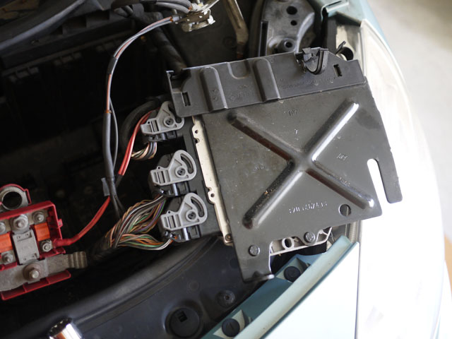 そして、このトレーの後方側にフロントコンピューターがありますので、右上の締結用のボルトも外して、