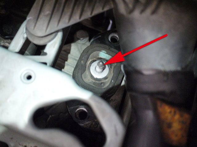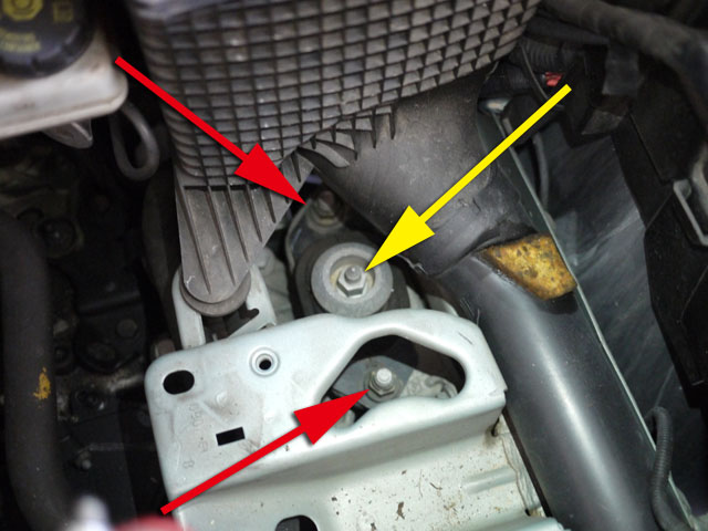 赤矢印のナット2個と、黄矢印のナットを外せば、ミッションマウントが外れるはずです。