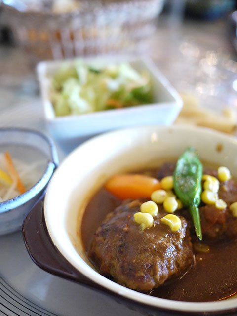 ピリ辛カレーソースハンバーグセット。